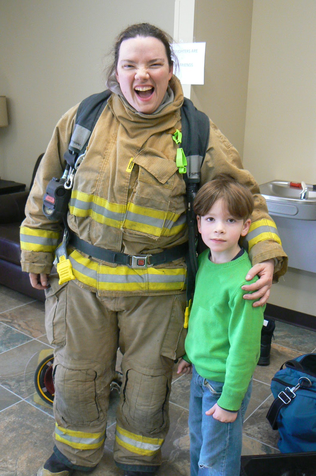 We went to a Fire Station in a nearby town with our local co-op. We had such a blast. It was super interesting as thy had yellow trucks and told us all about how they fabricate all of their own trucks and vehicles on site. Most other stations spend millions on their trucks. By fabricating their own this particular station only spends a few hundred thousand dollars per truck. We also loved climbing all over the trucks, and watching them do their demonstration. The propane fire was pretty intense. This was a first time for us as we hadn't visited a Fire Station before. It was really fun and it inspired us for safety.